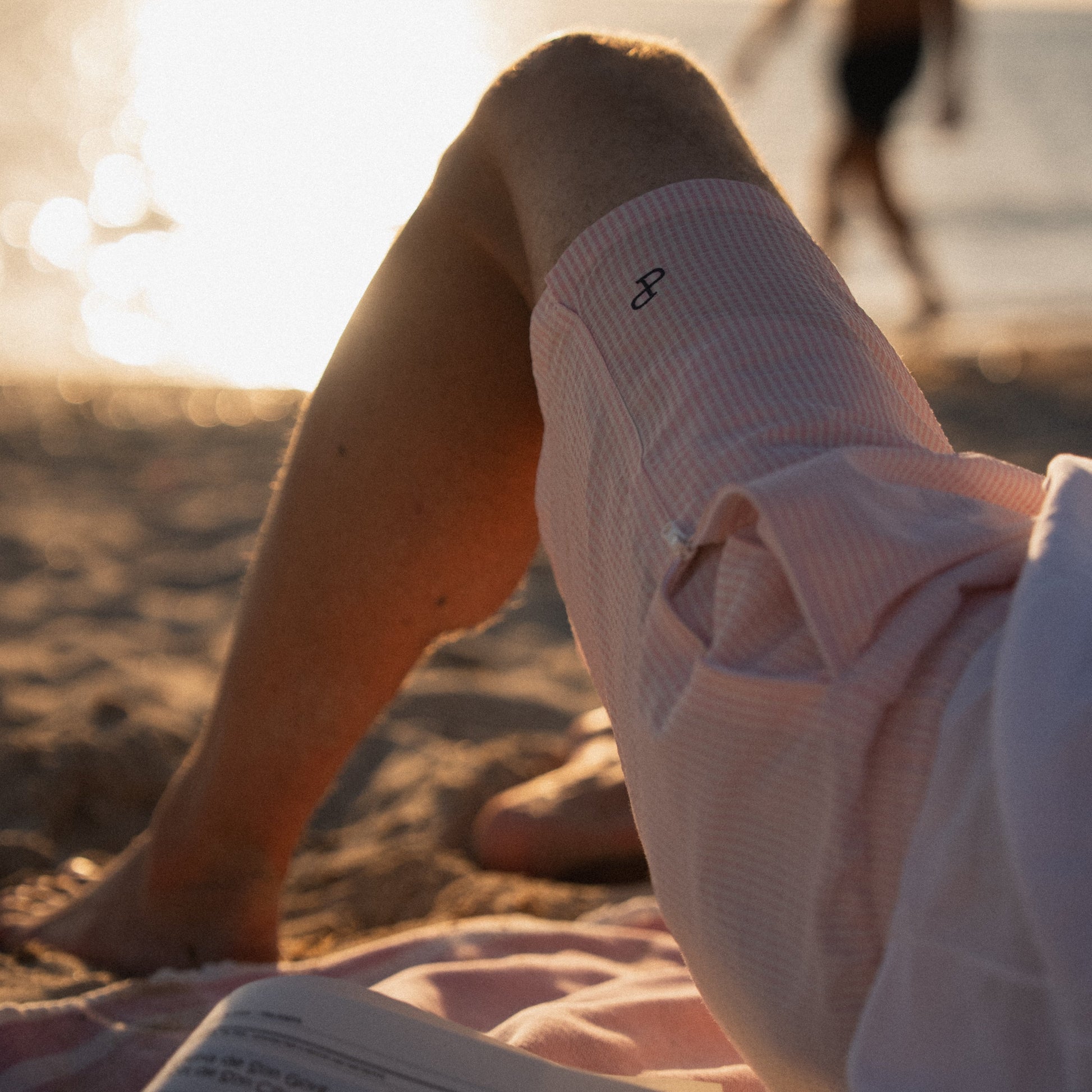 Der rosa-weiß gestreifte Seersucker-Stoff sorgt für eine strukturierte Oberfläche und ein gepflegtes Erscheinungsbild – angenehm leicht, formbeständig und schnell trocknend.